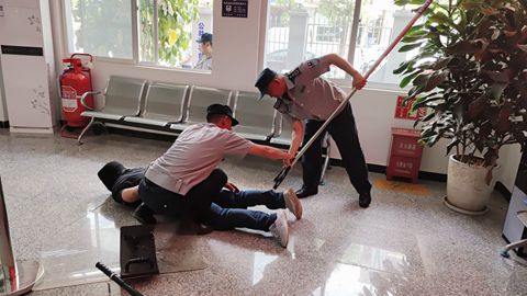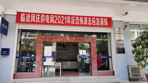 在反恐怖襲擊演練中,本次演練以該局鳳慶營(yíng)業(yè)廳內(nèi)突然出現(xiàn)2名不明身份窮兇極惡的持刀恐怖分子,挾持1名安保人員為演練假定場(chǎng)景。演練營(yíng)業(yè)廳值班人員信息報(bào)告、應(yīng)急響應(yīng)啟動(dòng)、人身救援、通訊聯(lián)絡(luò)等現(xiàn)場(chǎng)應(yīng)急處置過程。演練現(xiàn)場(chǎng), 2名持刀窮兇極惡的恐怖分子以辦事為由,在保安人員正當(dāng)詢問及登記之際,恐怖分子手持管制刀具強(qiáng)行推開營(yíng)業(yè)廳門闖入廳內(nèi),企圖用砍刀襲擊現(xiàn)場(chǎng)保安工作人員并直奔營(yíng)業(yè)廳平臺(tái)破壞電力營(yíng)業(yè)收費(fèi)管理正常秩序。營(yíng)業(yè)廳工作人員立即向應(yīng)急辦值班室匯報(bào),應(yīng)急辦主任聽取應(yīng)急辦值班室匯報(bào)后,立即做出啟動(dòng)生產(chǎn)辦公場(chǎng)所反恐怖襲擊事件(四級(jí))應(yīng)急響應(yīng)的決定,安排有關(guān)保安和工作人員對(duì)現(xiàn)場(chǎng)進(jìn)行處置,保安人員并及時(shí)持盾牌、鋼叉等警用設(shè)備與暴徒對(duì)峙,采取應(yīng)急處置措施,終將恐怖分子制服。