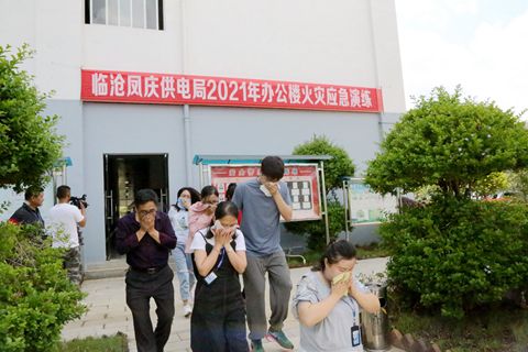 在火災(zāi)演練中,演練模擬鳳慶供電局辦公大樓發(fā)生火災(zāi),當(dāng)聽到警鳴聲后,正在上班的員工們沒有驚慌失措,按照突發(fā)應(yīng)急預(yù)案,在各樓層疏散負(fù)責(zé)人引導(dǎo)下,按照火災(zāi)逃生要求,用濕毛巾捂住口鼻,彎腰低行,有序地從辦公樓4個(gè)消防安全樓道疏散撤離。疏散過程中沒有出現(xiàn)堵塞、爭(zhēng)先恐后、推撞踩踏的現(xiàn)象。全體員工們到達(dá)安全場(chǎng)地時(shí),立即集合,清點(diǎn)人數(shù),發(fā)現(xiàn)未有辦公人員被困于發(fā)電機(jī)房及辦公場(chǎng)所。