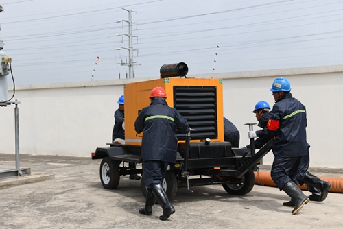 針對今年東??h域雨水增多、氣候變化頻繁,本次防汛演練以東海縣域突降暴雨為背景,110千伏濱河變模擬暴雨后排水系統(tǒng)排水不及,雨水經(jīng)過電纜溝倒灌進變電站,綜合檢驗多部門協(xié)同合作,出現(xiàn)汛情時運維人員的防汛對應能力。