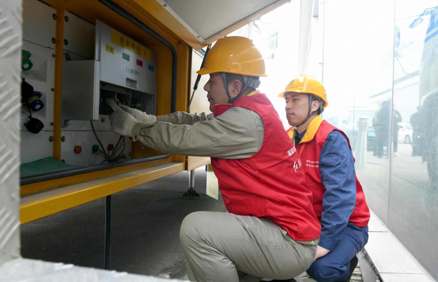 中國電力網(wǎng)訊(通訊員苗云夢、秦蕾)3月27日下午,一臺黃色的400千伏安的自備電源車勻速駛?cè)胫兴車H會展中心,車輛停妥后,國家電網(wǎng)浙江電力(余姚)紅船共產(chǎn)黨員服務隊隊員陳啟鵬從工具箱里拿出工具,輕車熟路地開始連接電源線,進行移動電源車調(diào)試,為塑博會開幕式用電保駕護航。