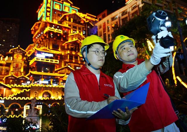 4月30日,在洪崖洞民俗風貌區(qū),國家電網紅巖(市區(qū)渝中)共產黨員服務隊對景區(qū)供電線路及配套電力設施進行夜巡。節(jié)日期間,他們不間斷在解放碑商圈、網紅景點以及重要保電場所開展高精度紅外測溫及特殊巡視,密切監(jiān)測供電線路、設備運行狀態(tài),指導商圈、景區(qū)商鋪規(guī)范用電,為游客營造良好安全的游玩環(huán)境。