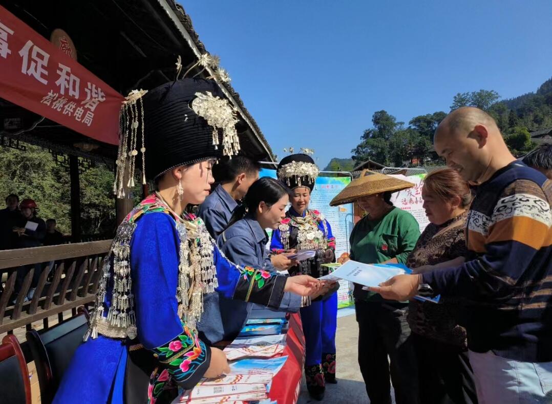 “苗歌”是苗族的一種說唱形式。在村里的另一頭,該局志愿者針對(duì)部分少數(shù)民族村寨對(duì)文字理解有限等原因,將各項(xiàng)法律法規(guī)編譯成苗語,通過“苗歌+法律”的方式,進(jìn)行普法宣傳。村民們紛紛表示,現(xiàn)場(chǎng)傳唱苗歌,不僅聽得懂,也更好理解,生動(dòng)又貼近實(shí)際,非常受用。