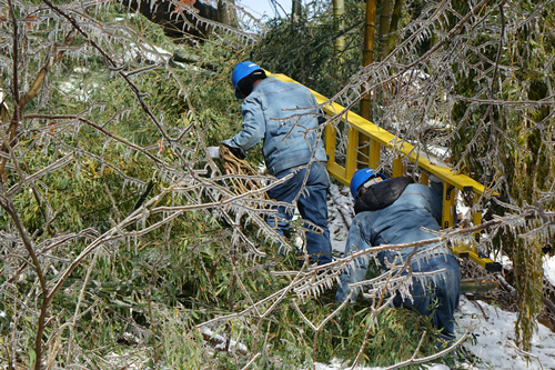 該公司組織突擊隊(duì)積極應(yīng)對(duì)寒潮, 對(duì)受損電力設(shè)施進(jìn)行搶修