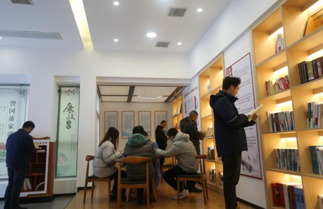 國網(wǎng)衡陽縣供電公司的干部職工在廉政文化館內(nèi)閱讀相關(guān)書籍,接受廉政教育(王勤 供圖)