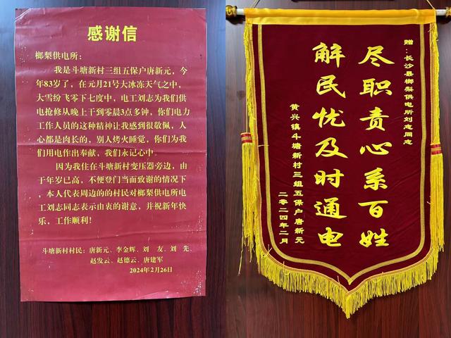 “每隔一段時(shí)間,你們就來幫忙檢查我們村高齡及獨(dú)居老人家里的線路,謝謝你們,真是辛苦了。”3月1日,斗塘新村83歲的村民唐新元老人將一面錦旗和一封感謝信送到了?梨供電所,以此表達(dá)對(duì)“電雷鋒”劉志的感激之情。