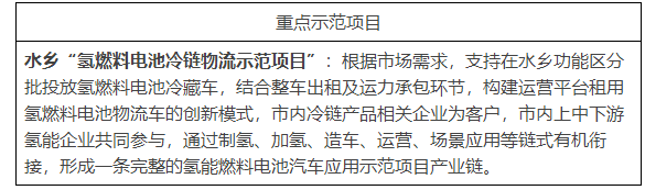 2.有序推進燃料電池汽車示范應用。以水鄉(xiāng)“氫燃料電池冷鏈物流示范項目”為推廣試點,支持市屬國有企業(yè)牽頭推動項目落地。以冷鏈物流車、環(huán)衛(wèi)車、重型牽引車等商用車應用為突破點和切入點,推進燃料電池汽車在港口、物流園區(qū)、重點產(chǎn)業(yè)園區(qū)等區(qū)域和長途貨運、城市配送、市政環(huán)衛(wèi)、城市建設等領域示范應用,打造大灣區(qū)氫能物流中心和綠色示范港口。