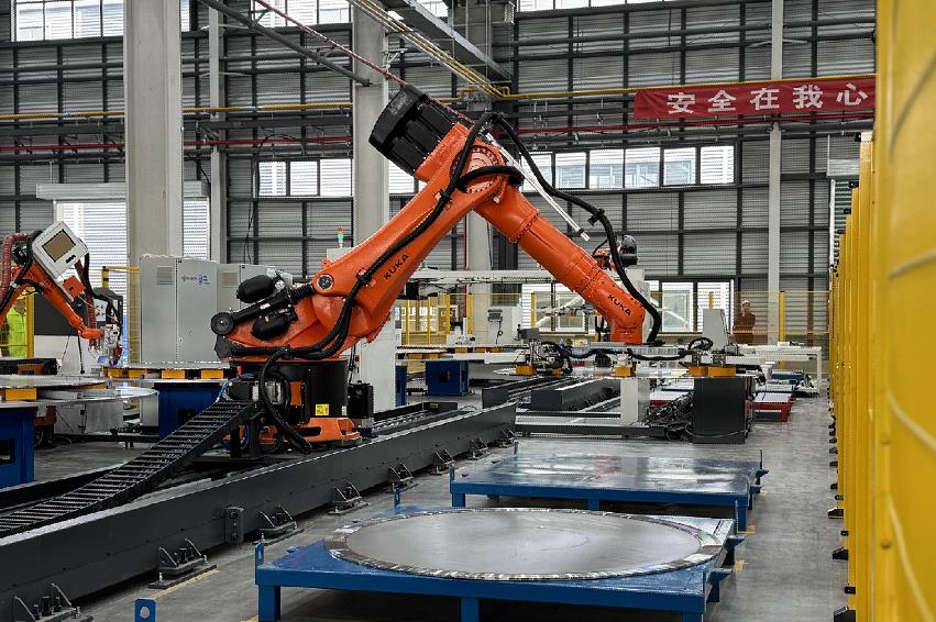 天合元氫堿性電解槽自動化產(chǎn)線??萍既請笥浾?王禹涵 攝