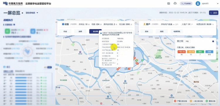 云景平臺網(wǎng)級一屏總覽,通過對公司全域、全業(yè)務(wù)、全流程的監(jiān)控和戰(zhàn)略運(yùn)行指標(biāo)的監(jiān)控,公司領(lǐng)導(dǎo)可以概覽公司生產(chǎn)經(jīng)營和業(yè)務(wù)運(yùn)營情況。
