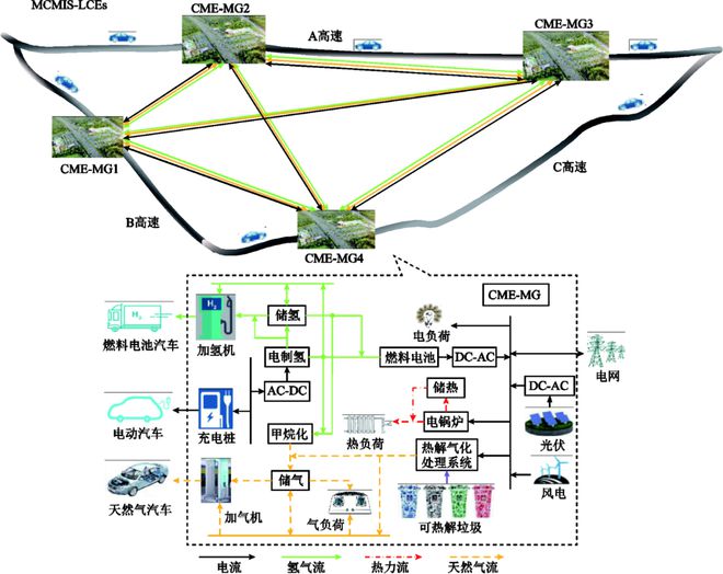 新能源汽車產(chǎn)業(yè)的快速發(fā)展是實(shí)現(xiàn)“碳達(dá)峰,碳中和”行動(dòng)的重要組成部分。隨著新能源汽車逐步規(guī)?;l(fā)展,我國(guó)電能、氫氣、天然氣驅(qū)動(dòng)汽車保有量預(yù)計(jì)在2035年突破1.5億輛。面對(duì)不斷增長(zhǎng)的多能源充能需求和碳減排壓力,提出含電、氫和天然氣等多種能源生產(chǎn)、傳輸、轉(zhuǎn)換、存儲(chǔ)、消費(fèi)各環(huán)節(jié)深度耦合,并具有一定垃圾處理能力的充能型微網(wǎng)是解決新能源汽車充能這一涵蓋環(huán)境、交通、能源等多領(lǐng)域協(xié)同問(wèn)題的有效途徑之一。