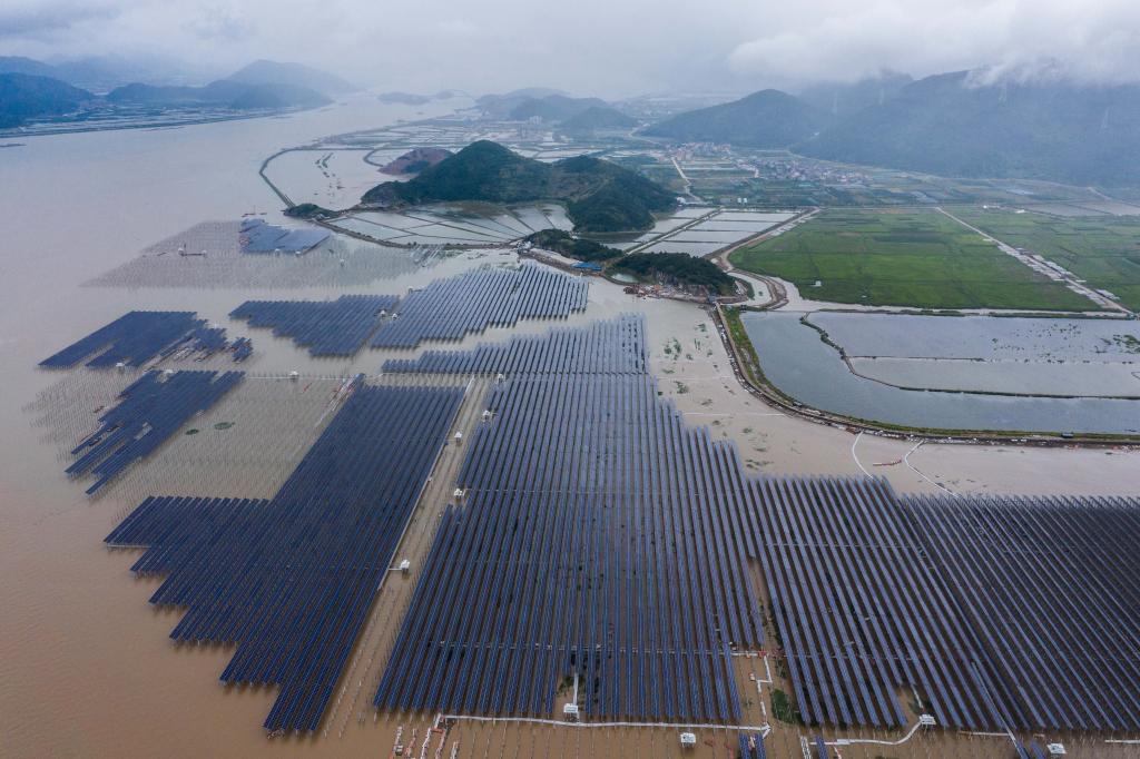 6月29日,象山長大涂灘涂光伏項(xiàng)目(無人機(jī)照片)。新華社記者 徐昱 攝