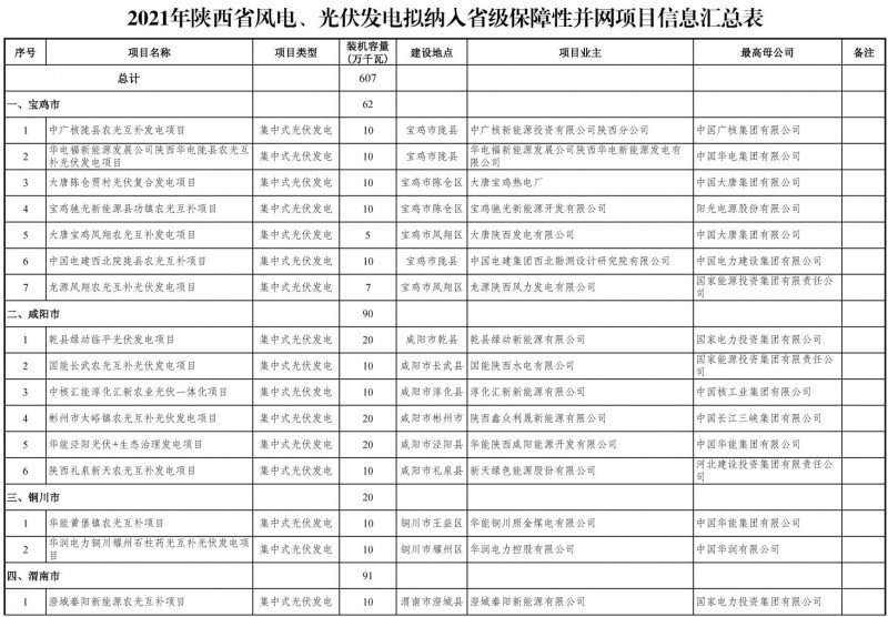 關(guān)于陜西省2021年風(fēng)電、光伏發(fā)電保障性并網(wǎng)項(xiàng)目競爭性配置結(jié)果的公示