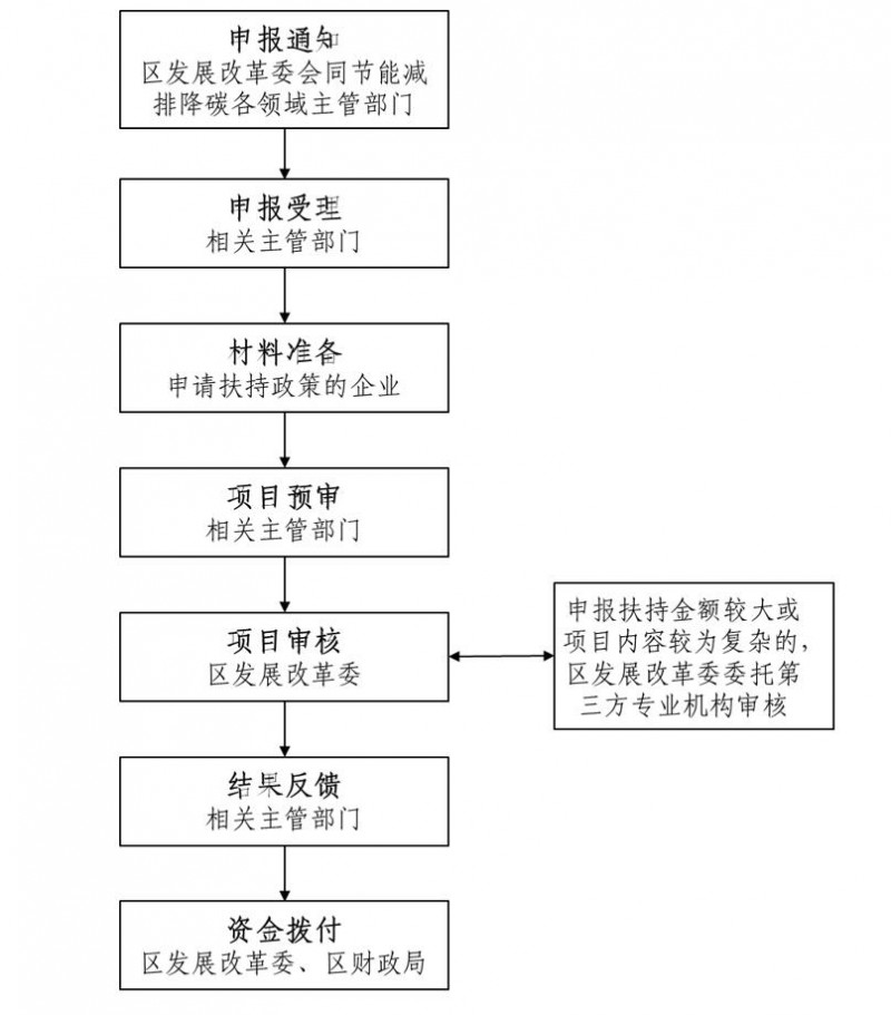 (二)申報受理。對區(qū)域節(jié)能減排降碳等領域發(fā)展作出積極貢獻的企業(yè),可以在項目申報指南規(guī)定的申請期內向相關主管部門申請扶持。