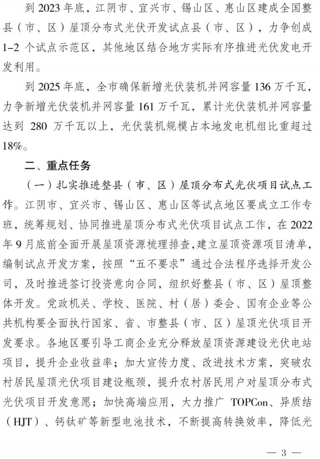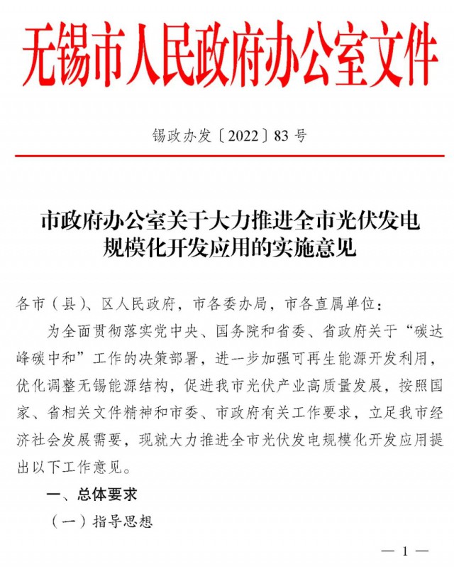 近日,江蘇省無錫市人民政府印發(fā)《關于大力推進全市光伏發(fā)電規(guī)模化開發(fā)應用的實施意見》,文件提出:到2030年,江陰市、宜興市、錫山區(qū)、惠山區(qū)建成全國整縣(市、區(qū))屋頂分布式光伏開發(fā)試點縣(市、區(qū)),力爭創(chuàng)成1-2個試點示范區(qū),其他地區(qū)結合地方實際有序推進光伏發(fā)電開發(fā)利用。