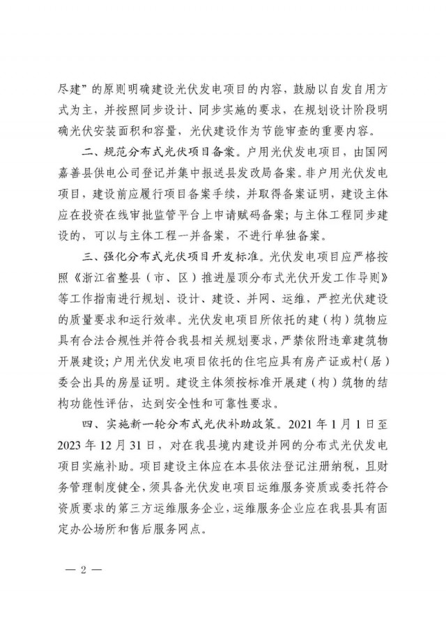10月14日,嘉善政府網(wǎng)發(fā)布“關(guān)于推進分布式光伏發(fā)展的若干意見”。