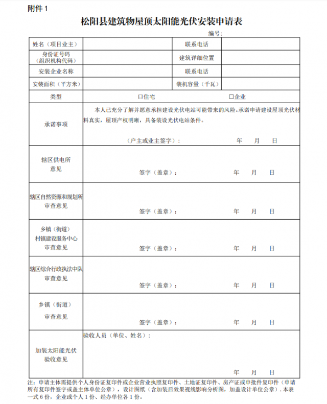 附件:1.《松陽縣建筑物屋頂太陽能光伏安裝申請表》