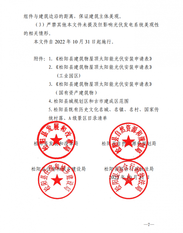 (四)嚴格控制縣城一類規(guī)劃區(qū)范圍、松陰溪兩岸、建制鎮(zhèn)主要道路兩旁、A級旅游景區(qū)范圍線內(nèi)、政府項目建設用地范圍內(nèi)紅線等區(qū)域或范圍安裝屋頂光伏項目。