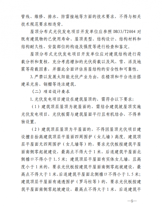 1.屋頂光伏項目建設需符合相關規(guī)劃,設計施工符合《浙江省整縣(市、區(qū))推進屋頂分布式光伏開發(fā)工作導則》《浙江既有民用建筑加裝太陽能光伏系統(tǒng)設計導則》和本通知相關要求,并與周邊建筑物、景觀相協(xié)調(diào)。