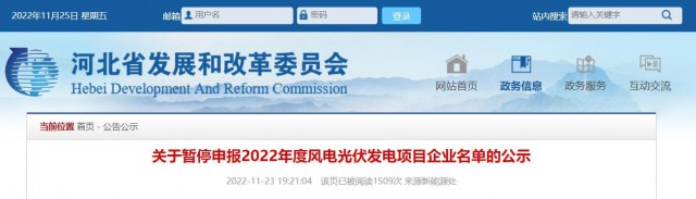 11月23日,河北省發(fā)布《關(guān)于暫停申報2022年度風(fēng)電光伏發(fā)電項(xiàng)目企業(yè)名單》的公示。通知顯示,為進(jìn)一步加強(qiáng)風(fēng)電光伏發(fā)電項(xiàng)目管理,按照對存有逾期未全容量并網(wǎng)項(xiàng)目企業(yè),原則上在全省范圍內(nèi)暫停該項(xiàng)目相關(guān)企業(yè)當(dāng)年新增項(xiàng)目申報的政策要求,現(xiàn)將暫停申報2022年度保障類、市場化企業(yè)名單予以公示。