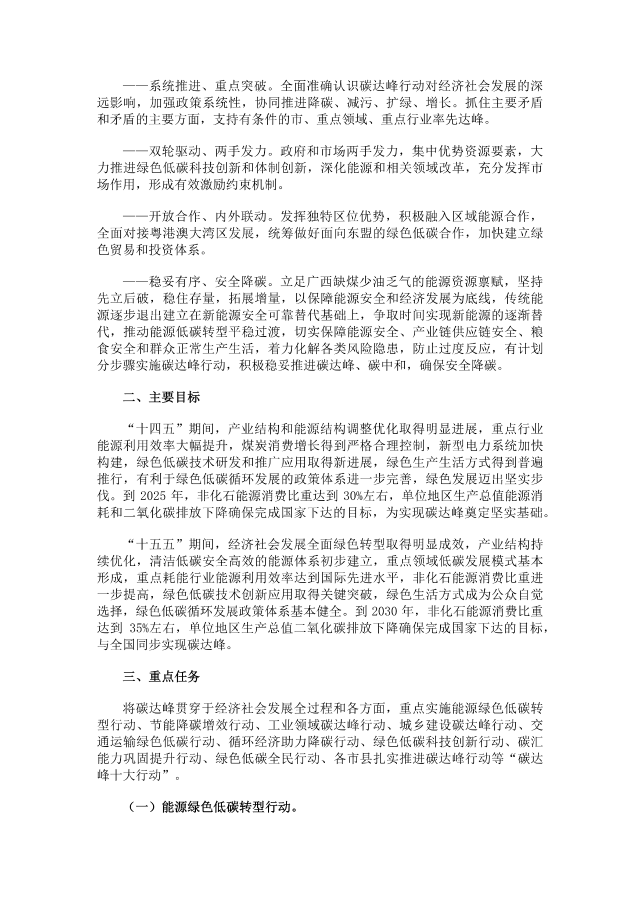 1月30日,廣西壯族自治區(qū)人民政府發(fā)布《廣西壯族自治區(qū)碳達(dá)峰實(shí)施方案》。其中提出,大力發(fā)展新能源。全面推進(jìn)風(fēng)電、光伏發(fā)電大規(guī)模開發(fā)和高質(zhì)量發(fā)展,堅(jiān)持集中式與分布式并舉,建設(shè)一批百萬千瓦級(jí)風(fēng)電和光伏發(fā)電基地。堅(jiān)持陸海并重,推進(jìn)桂北、桂西、桂中等風(fēng)能資源密集區(qū)陸上集中式風(fēng)電建設(shè),因地制宜發(fā)展分散式風(fēng)電,規(guī)?;?、集約化發(fā)展海上風(fēng)電,打造廣西北部灣海上風(fēng)電基地。