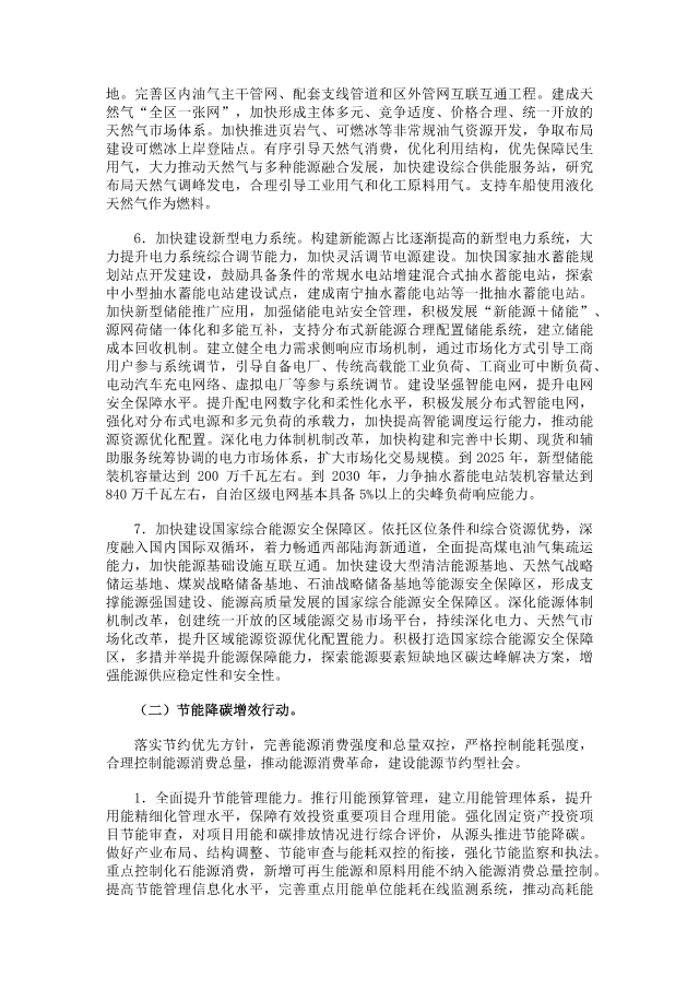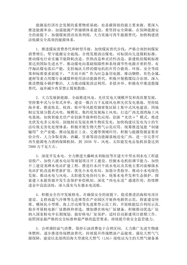 因地制宜發(fā)展農(nóng)林生物質(zhì)發(fā)電,加快構(gòu)建以發(fā)電為主的生活垃圾無害化處理體系,積極開展生物天然氣示范應(yīng)用。統(tǒng)籌推進(jìn)氫能“制儲(chǔ)輸用”全產(chǎn)業(yè)鏈,推動(dòng)氫能在工業(yè)、交通等領(lǐng)域應(yīng)用。積極與能源資源富集省份合作,大力爭取青海、西藏、甘肅等清潔能源基地送電廣西。進(jìn)一步完善可再生能源電力消納保障機(jī)制。到2030年,風(fēng)電、太陽能發(fā)電總裝機(jī)容量達(dá)到7000萬千瓦左右。