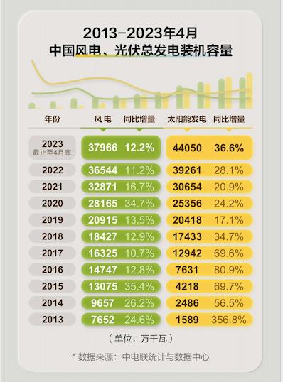得益于雙碳政策和市場驅(qū)動,全國風(fēng)電、光伏發(fā)電新增裝機(jī)突破1.2億千瓦時,連續(xù)三年突破1億千瓦。據(jù)國家能源局?jǐn)?shù)據(jù)顯示,截至4月底,我國風(fēng)電光伏發(fā)電總裝機(jī)已突破8億千瓦,占全國發(fā)電裝機(jī)的30.9%,約為36個三峽電站的總裝機(jī)容量。