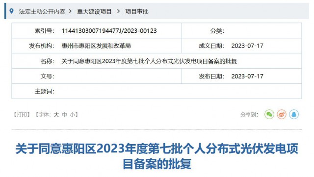 關(guān)于同意惠陽區(qū)2023年度第七批個人分布式光伏發(fā)電項目備案的批復(fù)