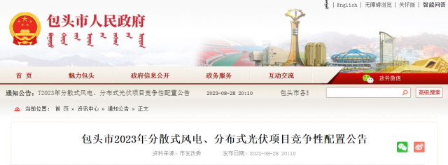 包頭市2023年分散式風(fēng)電、分布式光伏項(xiàng)目競(jìng)爭(zhēng)性配置公告