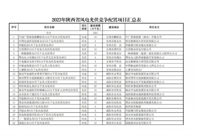 現(xiàn)將2023年陜西省風(fēng)電、光伏發(fā)電保障性并網(wǎng)項目競爭性配置結(jié)果進行公示。公示時間為2023年8月25日至2023年8月31日,如有異議,請在公示期內(nèi)以書面實名反映。