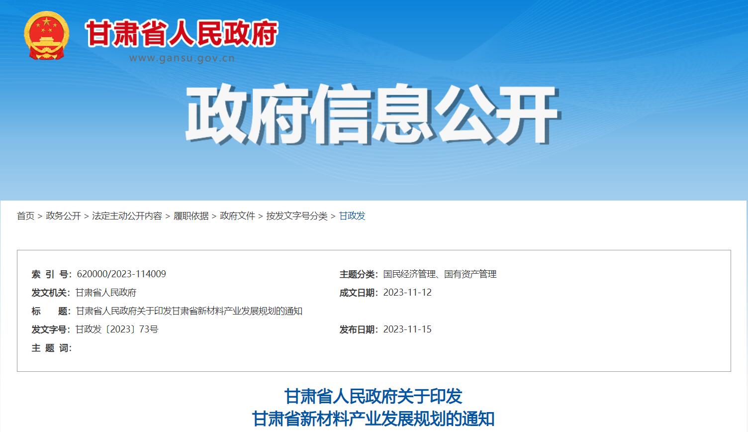 甘肅省新材料產(chǎn)業(yè)發(fā)展規(guī)劃