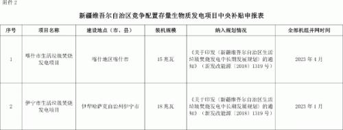 新疆維吾爾自治區(qū)發(fā)展和改革委員會(huì)關(guān)于擬申報(bào)中央補(bǔ)貼存量生物質(zhì)發(fā)電項(xiàng)目的公示