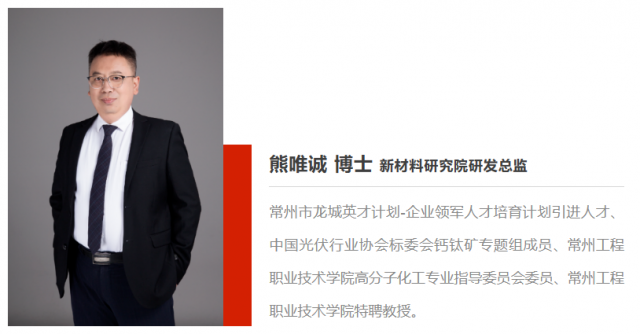 熊唯誠博士不僅在企業(yè)內部發(fā)揮帶頭引領作用,還積極參加行業(yè)科研交流,推進行業(yè)技術進步。他受邀加入全國首個鈣鈦礦領域標準工作專題組,與專題組優(yōu)秀同仁攜手推動鈣鈦礦光伏電池標準化制定,助力鈣鈦礦技術與產(chǎn)業(yè)化發(fā)展。其主持研發(fā)的相關課題產(chǎn)品分別獲得“江蘇省高新技術產(chǎn)品”和“常州市高新技術產(chǎn)品”,為光伏領域技術變革、降本增效貢獻一份力量。