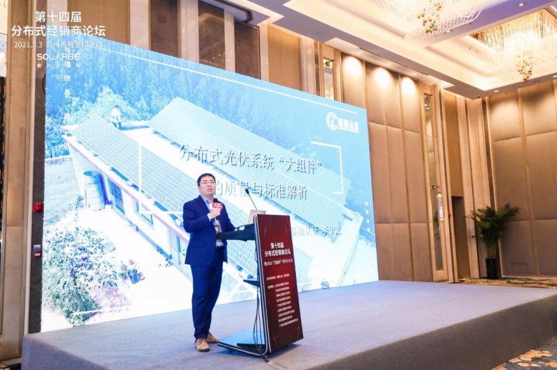 光能杯同期舉辦的第十四屆“光伏經(jīng)銷(xiāo)商論壇”中,鑒衡太陽(yáng)能事業(yè)部組件總監(jiān)李寧達(dá)帶來(lái)《分布式光伏系統(tǒng)“大組件”的質(zhì)量與標(biāo)準(zhǔn)解析》演講