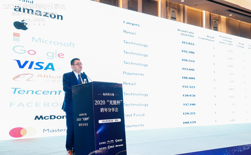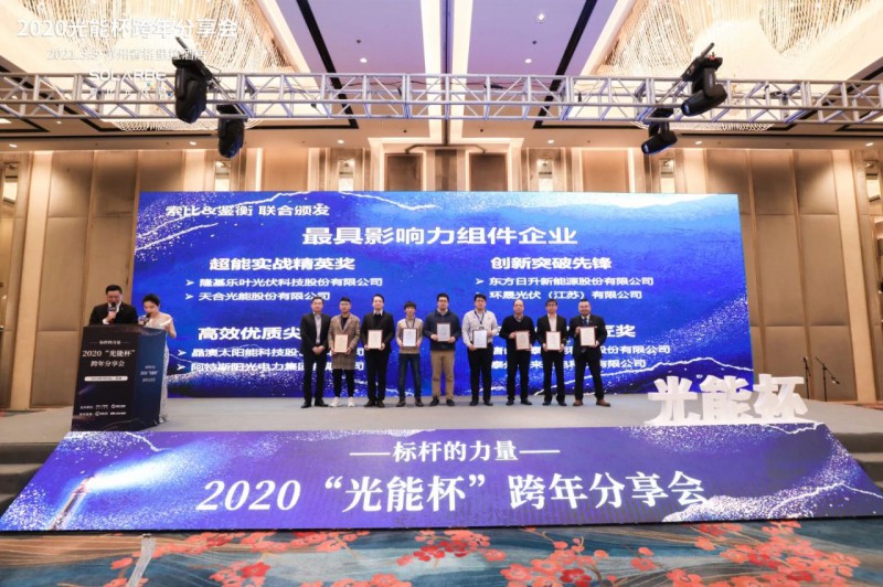 3月3日,由索比光伏網(wǎng)主辦的2020年度“光能杯”跨年分享會(huì)暨頒獎(jiǎng)典禮圓滿落幕。這是2021開(kāi)年的全國(guó)首個(gè)大型光伏頒獎(jiǎng)盛宴,來(lái)自中國(guó)各大光伏品牌企業(yè)代表及各地經(jīng)銷(xiāo)商代表齊聚一堂,400余人共同見(jiàn)證中國(guó)光伏行業(yè)的開(kāi)年榮耀時(shí)刻。