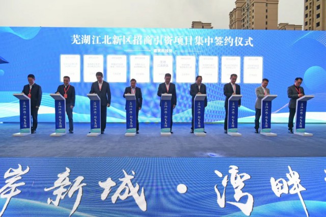 ▲蕪湖江北新區(qū)招商引資項(xiàng)目集中簽約儀式-建筑科技類(lèi)