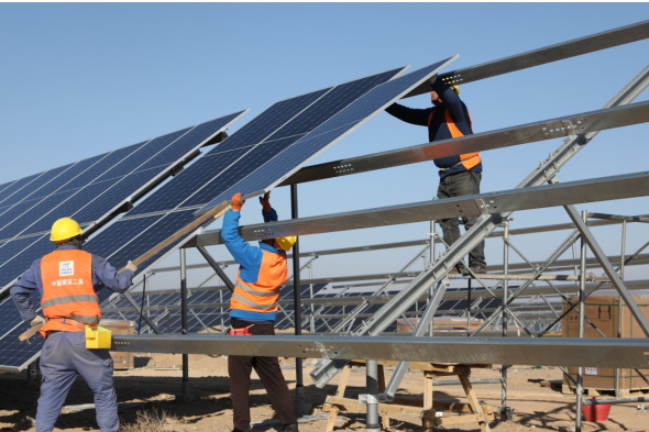 一望無垠的荒漠戈壁里,光伏藍(lán)海在陽光下熠熠生輝,與光熱儲能板塊、風(fēng)電板塊遙相呼應(yīng),“建”證著建設(shè)者在“沙戈荒”上追“光”逐“日”。中建二局將始終聚焦國家發(fā)展戰(zhàn)略,以實際行動為綠色中國貢獻(xiàn)更多力量。(麻倩、劉慶安)