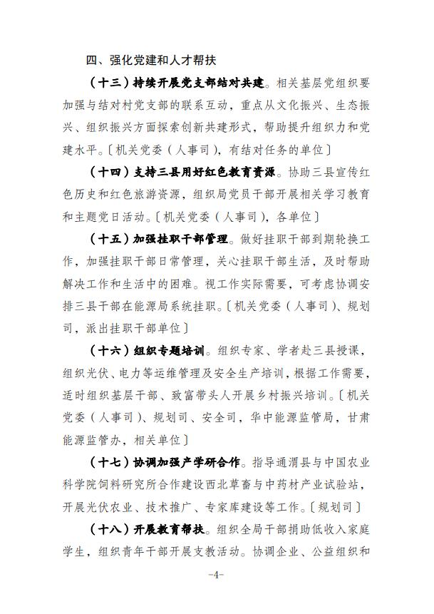 為做好2022年定點幫扶甘肅省通渭縣、清水縣和對口支援江西省信豐縣工作,現(xiàn)印發(fā)《國家能源局2022年鄉(xiāng)村振興定點幫扶和對口支援工作要點》,請按照職責(zé)分工扎實推進落實。