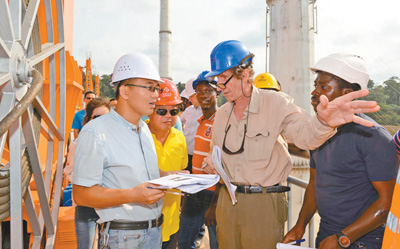 由中企承建的喀麥隆曼維萊水電站主體部分今年2月通過喀方臨時驗收委員會驗收。該項目位于喀麥隆南部大區(qū),總投資6.37億美元,總裝機容量211兆瓦。圖為監(jiān)理團隊和喀方業(yè)主成員對水電站主體部分進行技術驗收。