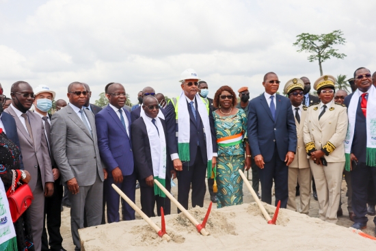 科特迪瓦政府總理帕特里克·阿奇(左五)出席項(xiàng)目開(kāi)工典禮