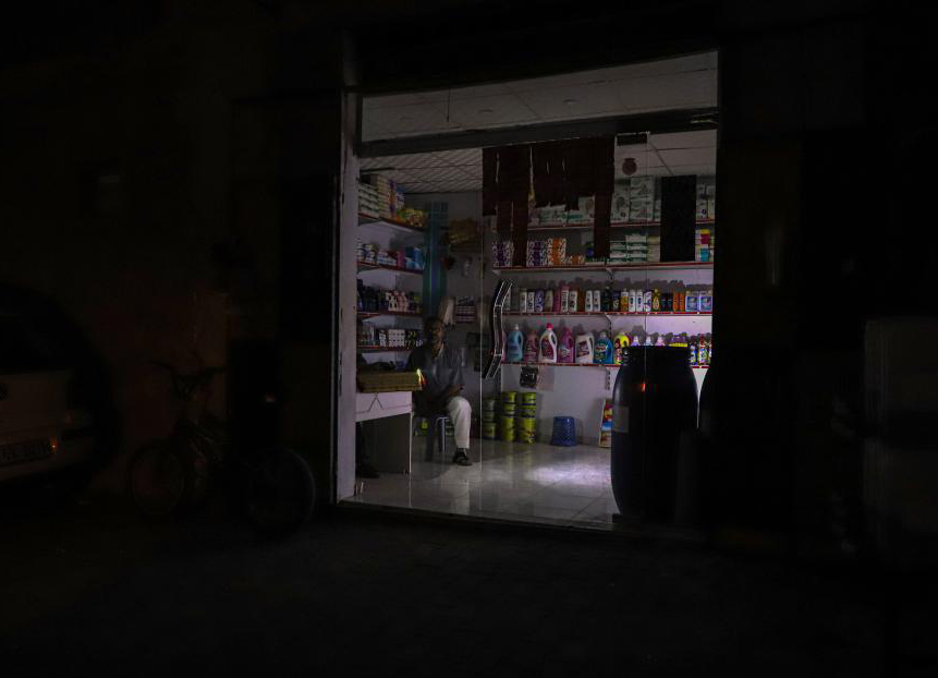 當(dāng)?shù)貢r間2023年10月16日,加沙地帶的汗尤尼斯,黑暗中的店鋪。