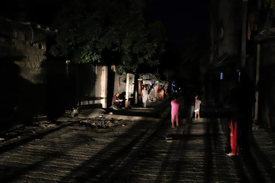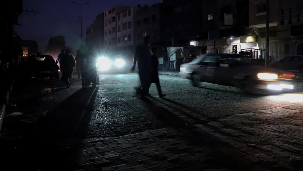當(dāng)?shù)貢r間2023年10月16日,加沙地帶的汗尤尼斯,人們走在黑暗的街上。