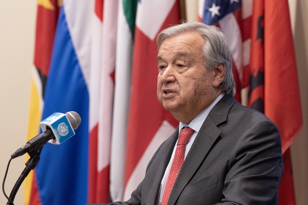 當(dāng)?shù)貢r間2023年10月13日,美國紐約,聯(lián)合國秘書長古特雷斯在聯(lián)合國總部向媒體發(fā)表關(guān)于中東局勢的聲明。