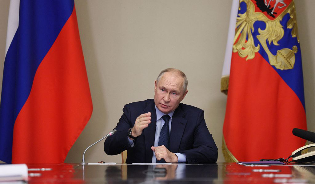 當(dāng)?shù)貢r間2023年10月16日,俄羅斯莫斯科,總統(tǒng)普京主持會議,討論俄烏沖突及巴以沖突。