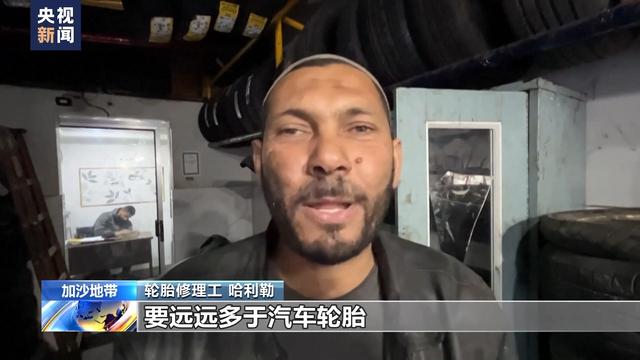 加沙地帶輪胎修理工 哈利勒:我現(xiàn)在修理的馬車或驢車車胎,要遠遠多于汽車輪胎。每天我要修30到50輛馬車或驢車的車胎,但只有四五輛汽車來修輪胎。以軍對我們的圍困令我們十分艱難,戰(zhàn)爭令我們感到絕望,我們每天都在經(jīng)歷這一切。我們非常缺水,也缺食物,我們無法過正常的生活。