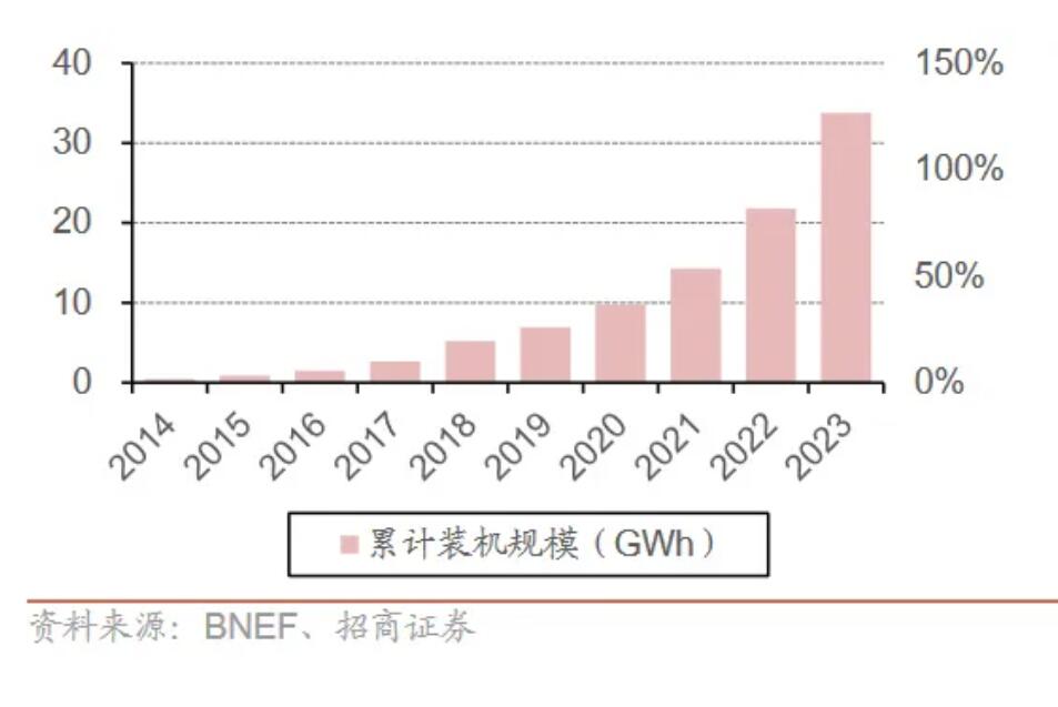 圖:2014-2023全球戶儲(chǔ)累計(jì)裝機(jī)規(guī)模(GWh)