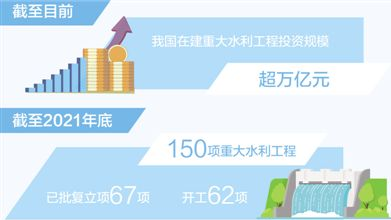 一道道大壩橫亙江河,一條條管道攀越山嶺,一座座水庫攬山擁水……一批基礎(chǔ)性、樞紐性、戰(zhàn)略性重大水利工程拔地而起,國家水網(wǎng)建設(shè)加快推進(jìn)。水利部數(shù)據(jù)顯示,150項(xiàng)重大水利工程建設(shè)在加快實(shí)施,截至2021年底,已批復(fù)立項(xiàng)67項(xiàng),開工62項(xiàng)。截至目前,我國在建重大水利工程投資規(guī)模超萬億元。