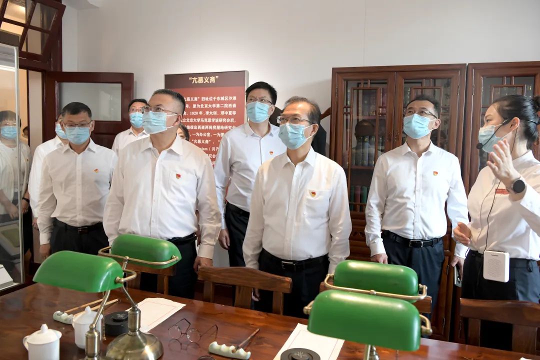 在北大紅樓,江毅帶領(lǐng)黨組理論學(xué)習(xí)中心組成員重溫了入黨誓詞,集體參觀了“光輝偉業(yè) 紅色序章——北大紅樓與中國共產(chǎn)黨早期北京革命活動主題展”,通過一件件革命文物回顧了李大釗、陳獨(dú)秀等革命先驅(qū)推動馬克思主義在中國早期傳播、醞釀和籌建中國共產(chǎn)黨的珍貴歷史。