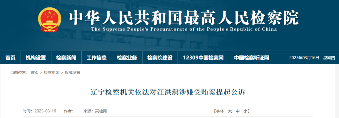 遼寧省發(fā)展和改革委員會原黨組成員、副主任兼遼寧省能源局原局長汪洪溟(副廳級)涉嫌受賄罪一案,由遼寧省監(jiān)察委員會調(diào)查終結(jié),經(jīng)遼寧省人民檢察院指定管轄,由沈陽市遼中區(qū)人民檢察院審查起訴。日前,遼中區(qū)人民檢察院依法向遼中區(qū)人民法院提起公訴。
