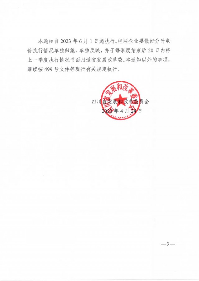 4月24日,四川省發(fā)展和改革委員會(huì)發(fā)布《關(guān)于調(diào)整我省分時(shí)電價(jià)機(jī)制的通知》,對(duì)峰平谷時(shí)段、大型商業(yè)用戶電價(jià)機(jī)制調(diào)整進(jìn)行了說明,將在6月1日起執(zhí)行,詳情如下:
