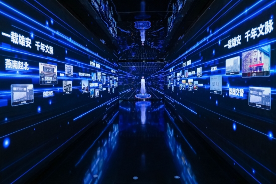 “雄安印象”總建筑面積約5300平方米,是集城市體驗、藝術(shù)展陳、休閑娛樂功能于一體的綜合性文化場館。該場館一層為雄安印象·城市廳,二層為雄安印象·藝術(shù)廳。其中,城市廳由“雄安·共生”“雄安·共建”“雄安·共享”三個展區(qū)組成,在增強現(xiàn)實AR、裸眼3D、多媒體觸屏互動等數(shù)字科技的加持下,呈現(xiàn)了科技城市交融共生的數(shù)字景觀,展示了雄安歷史文化脈絡和建設發(fā)展歷程。藝術(shù)廳以常設展、特展、跨界活動、線上展覽等多種形式貫穿全部展廳及公共空間,打造雄安文化交流、藝術(shù)探討和傳播的文化藝術(shù)實踐基地。(于祎凡)