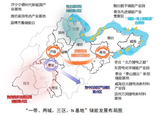 2022年底,《山東省新型儲能工程發(fā)展行動方案》正式印發(fā)。其中明確,山東將著力構(gòu)建“一帶、兩城、三區(qū)、N基地”發(fā)展格局,包括:打造“儲能+海上新能源”應(yīng)用帶,建設(shè)濟南、青島儲能示范城市,構(gòu)建魯北、魯中、魯西多個儲能重點區(qū),培育一批特色鮮明的產(chǎn)業(yè)基地,實現(xiàn)新型儲能由商業(yè)化初期向規(guī)?;l(fā)展轉(zhuǎn)變。